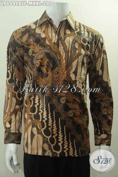 Kemeja Batik Solo Halus Kwalitas Bagus Motif Klasik, Baju Batik Cap Tulis Lengan Panjang Pakai Furing Deain Formal Untuk Kondangan Dan Rapat [LP6646BTF-XXL]