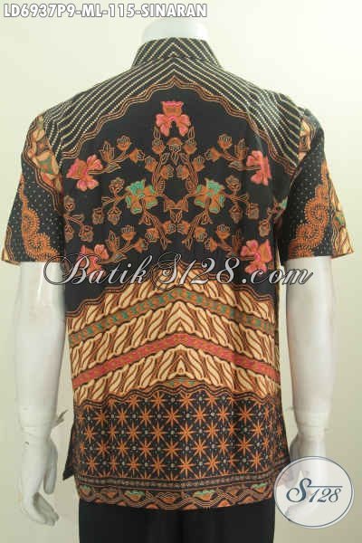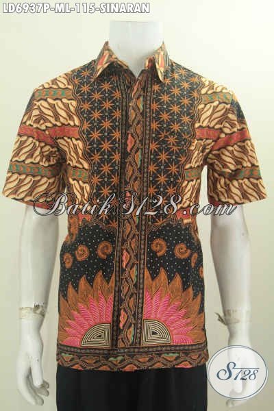Kemeja Batik Solo Klasik Motif Sinaran, Baju Batik Hem Halus Proses Printing Harga 100 Ribuan Bisa Tampil Gagah Dan Berwibawa [LD6937P-M , L]