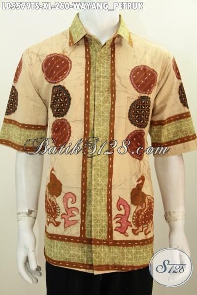 Kemeja Batik Solo Kwalitas Bagus Model Lengan Pendek, Pakaian Batik Modern Berkelas Motif Petruk Proses Tulis Soga Keren Buat Hangout [LD5579TS-XL]