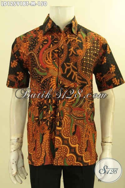 Kemeja Batik Solo Lengan Pendek Kwalitas Bagus Motif Elegan Jenis Kombinasi Tulis, Pakaian Batik Pria Muda Modis Untuk Kerja Kantoran Maupun Acara Resmi [LD12591BT-M]