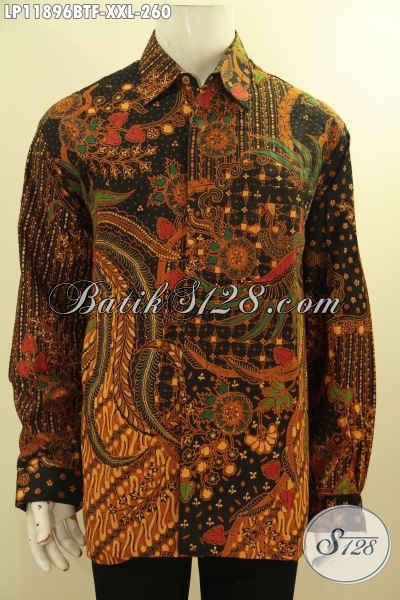 Kemeja Batik Solo Terbaru Model Tangan Panjang Pakai Furing, Busana Batik Nan Berkelas Motif Bagus Proses Kombinasi Tulis, Penampilan Lebih Menawan [LP11896BTF-XXL]