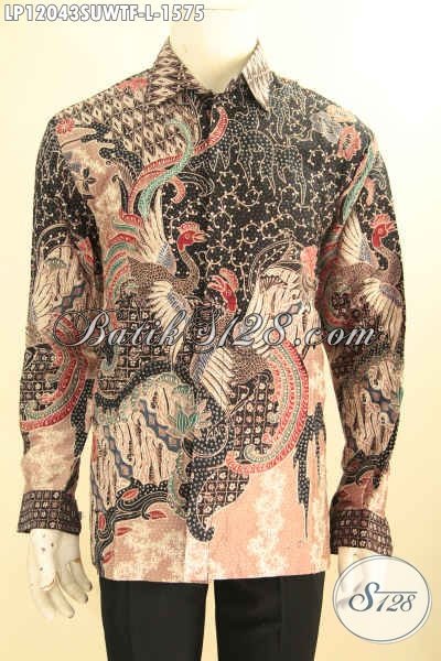 Kemeja Batik Sutra Nan Mewah, Busana Batik Tulis Premium Buatan Solo, Hadir Dengan Model Panjang Di Lengkapi Furing, Cocok Untuk Acara Formal Dan Rapat Kerja [LP12043SUWTF-L]