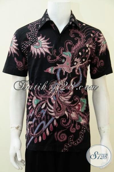 Kemeja Batik Tulis Desain Motif Terbaru Lebih Simple Dan Keren, Hem Batik Lengan Pendek Dasar Hitam Elegan Berkelas [LD2631T-M]