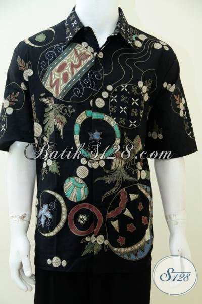 Kemeja Batik Tulis Motif Trendy Dengan Warna Hitam Elegan, Baju Batik Lengan Pendek Cocok Untuk Pria Tampil Menawan [LD2461T-XL]