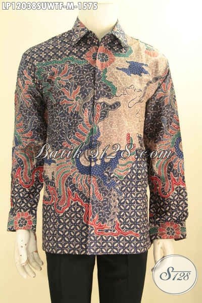 Kemeja Batik Tulis Premium Lengan Panjang Bahan Sutra Twise Nan Mewah, Pakaian Batik Pria Muda Sukses Daleman Full Furing, Tampil Gagah Mempesona [LP12038SUWTF-M]