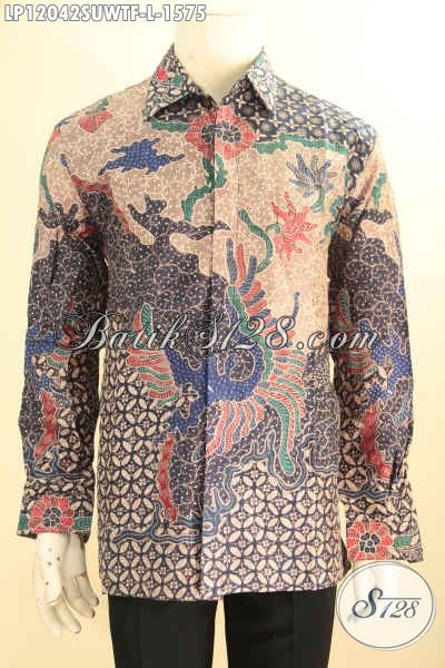 Kemeja Batik Tulis Premium Lengan Panjang Motif Mewah, Pakaian Batik Super Premium Khas Jawa Tengah Bahan Sutra Twise Yang Menunjang Penampilan Pria Sukses Lebih Gagah Dan Percaya Diri [LP12042SUWTF-L]