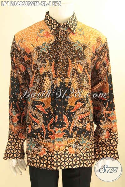 Kemeja Batik Tulis Sutra Nan Mewah, Baju Batik Pria Sukses Lengan Panjang Motif Terbaru Daleman Full Furing, Penampilan Terlihat Gagah Tampan Berwibawa [LP12048SUWTF-XL]