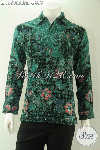 Kemeja Batik Warna Hijau Lengan Panjang Full Furing, Busana Batik Solo Motif Trendy Jenis Semi Tulis Spesial Untuk Pria Muda Maupun Dewasa [LP13310DBBTF-L]