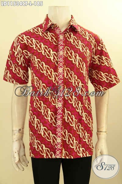Kemeja Batik Warna Merah Lengan Pendek Untuk Pria Muda Dan Dewasa, Busana Batik Motif Klasik Proses Cap Tulis Buatan Solo, Modis Buat Ngantor Dan Acara Resmi [LD11534CT-L]