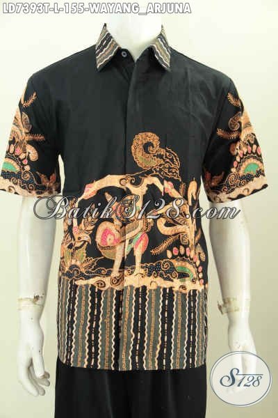 Kemeja Batik Wayang Arjuna, Hem Batik Modern Keren Berkelas Buatan Solo Model Lengan Pendek Untuk Penampilan Terlihat Gagah Dan Menawan [LD7393T-L]