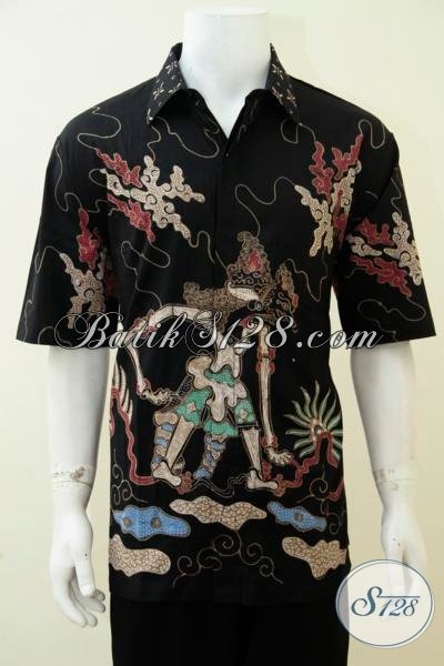 Kemeja Batik Wayang Bima Istimewa Untuk Pria Gemuk Tetap Tampil Gagah Berwibawa, Baju Batik Tulis Hitam Lengan Pendek Kwalitas Terjamin Bagus [LD2725T-XXL]