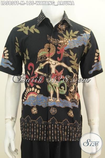 Kemeja Batik Wayang Motif Arjuna, Busana Batik Lengan Pendek Halus Tanpa Furing Dasar Hitam Elegan Proses Tulis Yang Bikin Cowok Terlihat Gagah Dan Berkarakter [LD5839T-M]