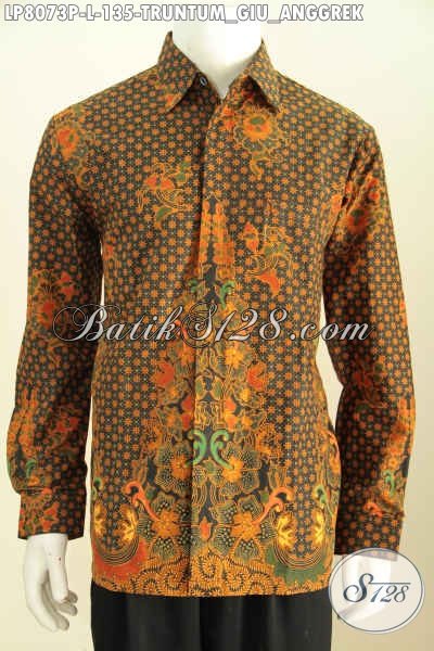 Kemeja Lengan Panjang Batik Printing Bagus Harga 100 Ribuan, Pakaian Batik Lengan Panjang Motif Truntum Giu Anggrek Pas Banget Untuk Acara Formal [LP8073P-L]