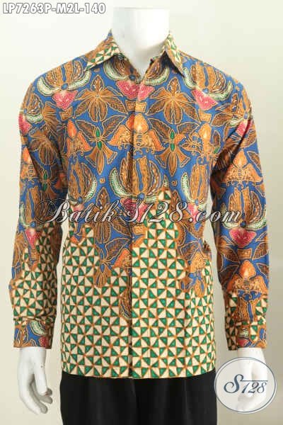 Kemeja Lengan Panjang Elegan Tidak Pakai Furing, Baju Batik Jawa Proses Printing Bisa Buat Kerja Dan Kondangan [LP7263P-M , L]