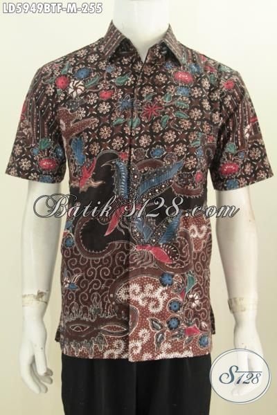 Kemeja Lengan Pendek Bahan Batik Motif Elegan, Produk Busana Batik Cowok Size M Bahan Halus Proses Kombinasi Tulis Full Furing Modis Buat Ke Kantor [LD5949BTF-M]