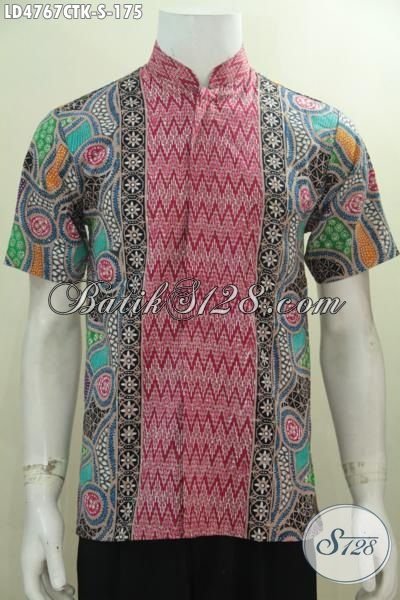 Kemeja Lengan Pendek Batik Cap Tulis Kerah Shnaghai, Busana Batik Pria Muda Ukuran Kecil, Baju Koko Batik Trendy Motif Kombinasi Tampil Makin Beda [LD4767CTK-S]