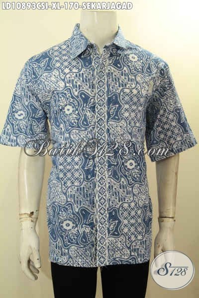 Kemeja Lengan Pendek Elegan Untuk Pria Dewasa, Busana Batik Halus Motif Klasik Sekarjagad Proses Cap, Pilihan Tepat Untuk Penampilan Gagah Elegan Berkelas Hanya 170K [LD10893CSI-XL]
