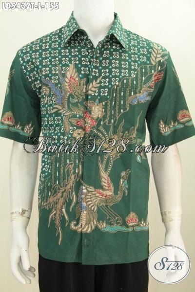 Kemeja Lengan Pendek Warna Hijau Bahan Batik Tulis Solo Istimewa Harga Murmer, Baju Batik Lengan Pendek Trendy Cocok Buat Santai Dan Formal [LD5432T-L]