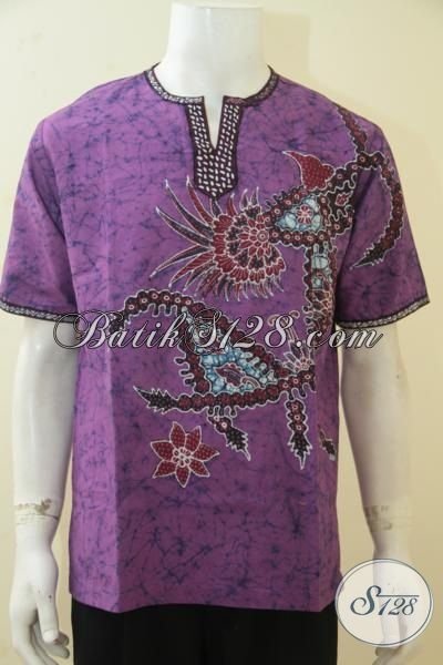 Kemeja Lengan Pendek Warna Ungu, Baju Batik Kerah Shanghai Modern Dan Keren, Batik Gaul Anak Muda Proses Tulis [LD4329TK-M]