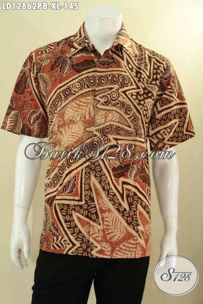 Kemeja Pria Lengan Pendek Bahan Batik Solo Motif Elegan, Baju Batik Kerja Kantoran Kwalitas Bagus Menunjang Penampilan Lebih Berkelas [LD12862PB-XL]