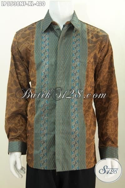 Kemeja Tenun Lengan Panjang Full Furing Warna Elegan Berpadu Motif Bagus Kwalitas Premium, Baju Hem Formal Bahan Tenun Istimewa Buat Penampilan Terlihat Mempesona [LP5538NF-XL]