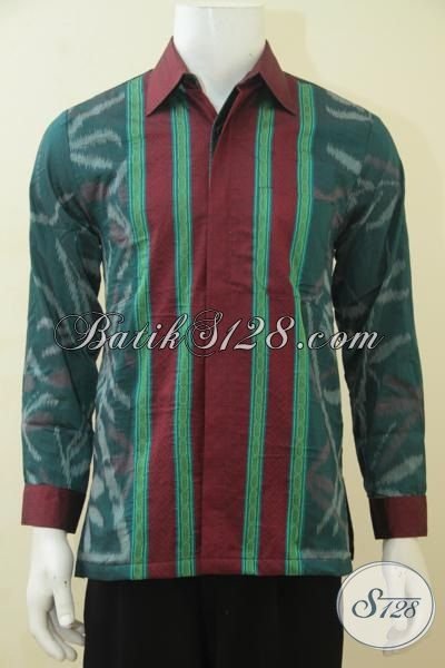 Kemeja Tenun Lengan Panjang Hijau Motif Bagus, Busana Keren Kwalitas Istimewa Dengan Daleman Full Furing Membuat Pria Nampak Gagah Dan Berwibawa [LP4446NF-M]