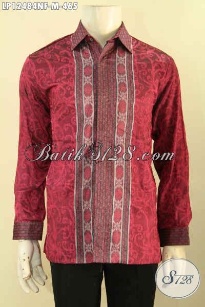 Kemeja Tenun Mewah Warna Merah Lengan Panjang Motif Bagus Daleman Full Furing, Tampil Berkelas Di Setiap Moment [LP12484NF-M]