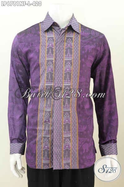 Kemeja Tenun Ungu Dengan Motif Berkelas, Produk Pakaian Tenun Terbaru Yang Modis Buat Rapat Dan Acara Formal, Bahan Halus Model Lengan Panjang Full Furing Harga 420 Ribua [LP6781NF-L]