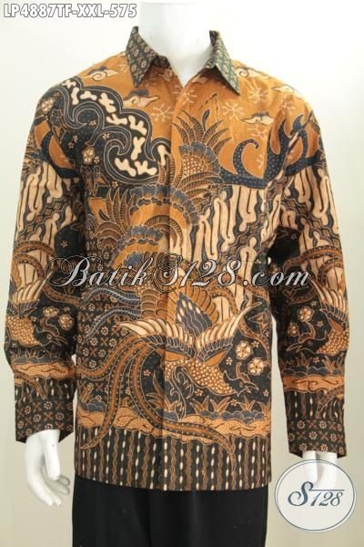 Kemeja Tulis Lengan Panjang Pake Furing Mewah Dan Berkelas, Baju Batik Klasik Jumbo Busana Kerja Pria Gemuk Tampil Makin Gagah Dan Mewah [LP4887TF-XXL]