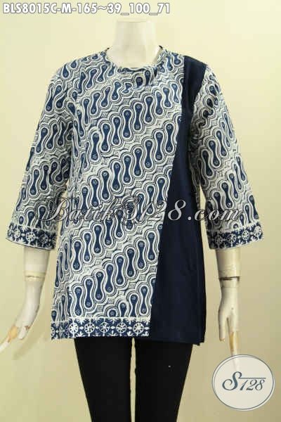 Koleksi Baju Batik Kerja Wanita 2018, Blus Modern Pias Kancing Belakang Kombinasi Polos Motif Klasik Proses Cap, Cocok Juga Untuk Acara Resmi [BLS8015C-M]