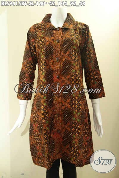 Koleksi Baju Batik Perempuan Model Krah Pakai Kancing Depan Lengan 7/8, Blouse Batik Istimewa Motif Elegan Tampil Terlihat Berkelas [BLS9615BT-XL]