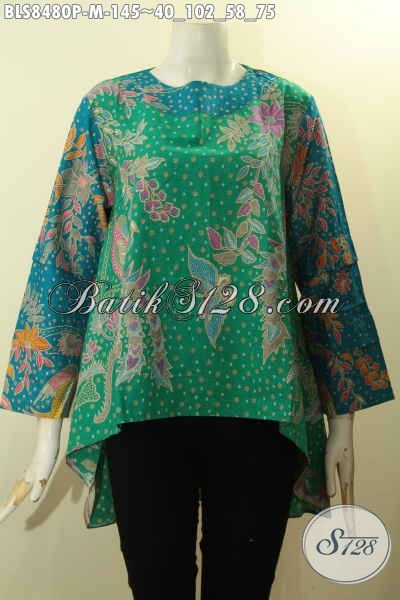 Koleksi Baju Batik Wanita Karir Terbaru, Blouse Batik Keren Motif Bagus Warna Kombinasi Bahan Adem Desain Kekinian Bikin Penampilan Cantik Menawan [BLS8480P-M]