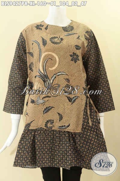 Koleksi Baju Batik Wanita Terbaru Di Jual Online Murmer, Blouse Batik Bahan Halus Kombinasi 2 Motif Pakai Resleting Belakang Lengan 7/8 Pinggang Bertali Kanan Dan Kiri, Bagus Untuk Kerja Dan Acara Resmi [BLS9427PB-XL]