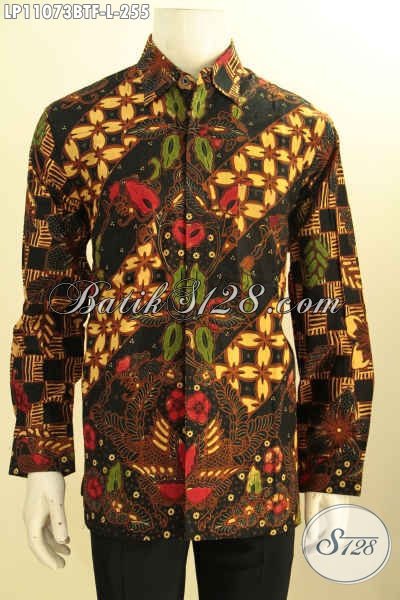 Koleksi Busana Batik Pria Terkini, Baju Batik ELegan Dan Mewah Motif Bunga Model Lengan Panjang Proses Kombinasi Tulis Daleman Pakai Furing, Penampilan Lebih Istimewa [LP11073BTF-L]