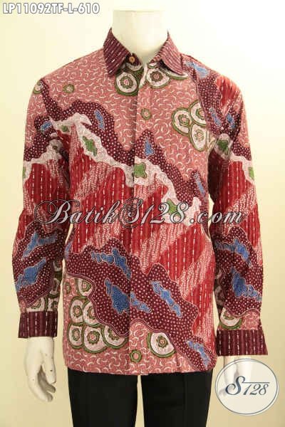 Koleksi Busana Batik Pria Terkini Lengan Panjang Premium, Pakaian Batik Berkelas Warna Bagus Motif ELegan Klasik Proses Tulis Asli Daleman Full Furing, Cocok Untuk Rapat Dan Acara Resmi [LP11092TF-L]