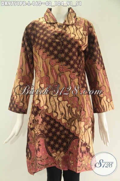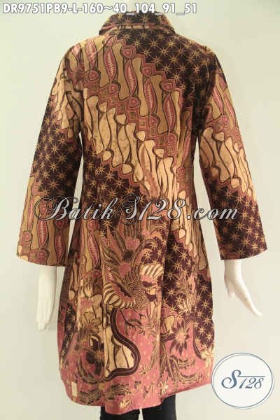 Koleksi Paling Baru Dress Wanita Bahan Batik Khas Solo, Busana Batik Desain Berkelas Pakai Kerah Kancing Depan Sampai Bawah Lengan 7/8, Pilhan Tepat Untuk Acara Resmi Dan Kondangan [DR9751PB-L]