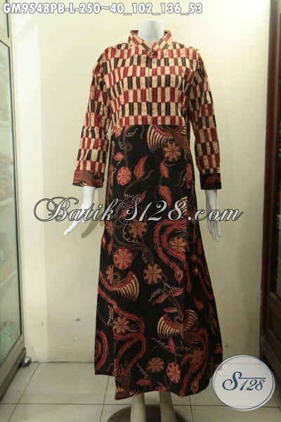 Koleksi Produk Gamis Batik Solo Lengan Pajang Pakai Manset Kancing, Busana Batik Wanita Berhijab Desain 2 Motif Dengan Resleting Depan, Tampil Gaya Dan Berkelas [GM9548PB-L]