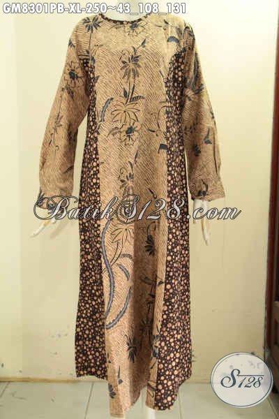 Koleksi Terbaru 2018 Gamis Batik 2 Model A Nan Berkelas, Pakaian Batik Wanita Muslimah Kancing Depan Dengan Dual Motif Klasik Printing Solo Asli Hanya 200 Ribuan [GM8301PB-XL]