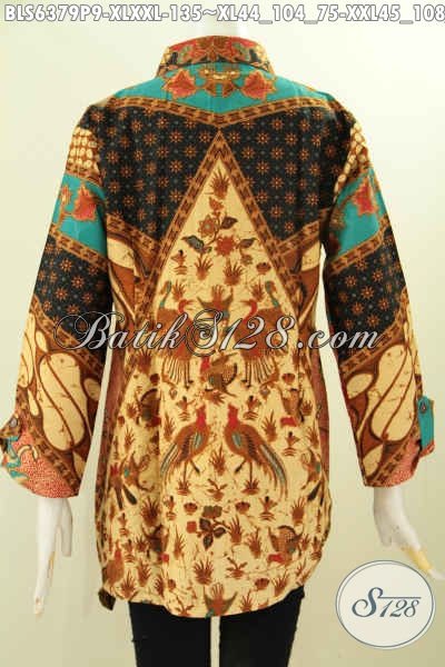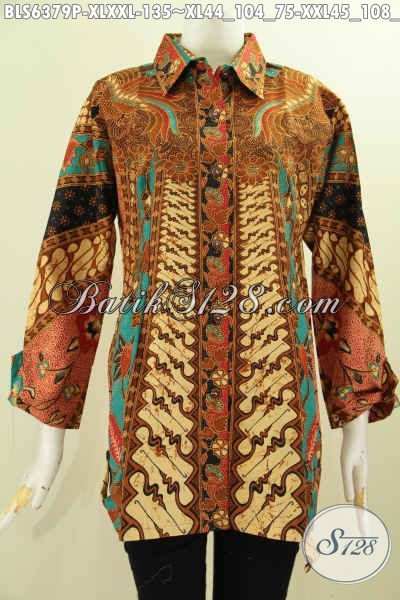 Koleksi Terbaru Aneka Busana Batik Wanita Model Kerah Kemeja Pria Bahan Halus Motif Klasik Proses Printing Harga 135K [BLS6379P-XL , XXL]