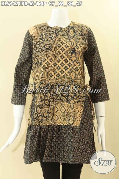 Koleksi Terbaru Baju Batik Wanita Kombinasi 2 Motif Bahan Halus Model Lengan 7/8 Pakai Resleting Belakang Dan Tali Di Bagian Kanan Maupun Kiria Untuk Penampilan Lebih Trendy [BLS9421PB-M]