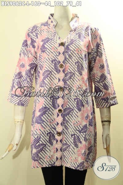 Koleksi Terbaru Batik Blouse Wanita Masa Kini, Baju Batik Istimewa Lengan 3/4 Bahan Adem Motif Bagus Proses Cap Yang Menunjang Penampilan Makin Mempesona [BLS9062C-L]