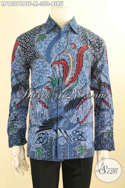 Koleksi Terbaru Busana Batik Pria Lengan Panjang Desain Mewah Motif Elegan Warna Biru, Baju Batik Solo Asli Nan Berkelas Cocok Untuk Acara Resmi [LP12076BTF-M]
