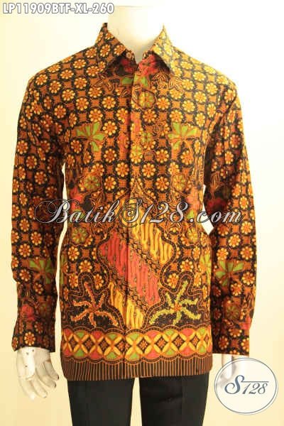 Koleksi Terbaru Busana Batik Pria Tangan Panjang Elegan Full Furing, Pakaian Batik Kemeja Nan Berkelas Bahan Halus Motif Klasik Proses Kombinasi Tulis Harga 200 Ribuan [LP11909BTF-XL]