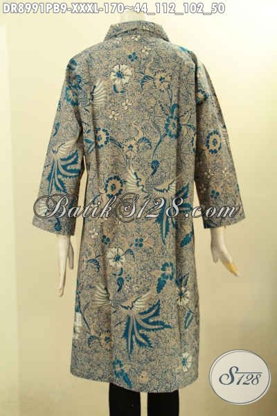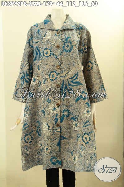 Koleksi Terbaru Busana Batik Wanita Ukuran XXXL, Pakaian Batik Super Jumbo Desain Kekinian Dengan Kerah Kancing Depan Serta Lengan 7/8 Yang Membuat Penampilan Cantik Menawan [DR8992PB-XXXL]