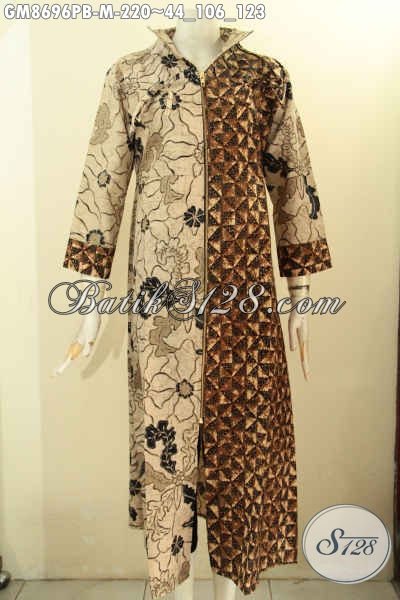 Koleksi Terbaru Gamis Batik Wanita Muda Model Resleting Depan, Busana Batik ELegan Dual Motif Nan Mewah, Pilihan Tepat Tampil Beda Dan Anggun [GM8696PB-M]