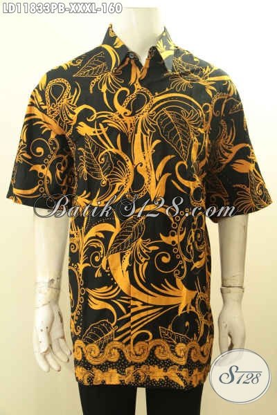 Koleksi Terbaru Kemeja Batik Cowok Gemuk, Pakaian Batik Solo Asli Lengan Pendek Motif Trendy Bahan Halus Warna ELegan, Pas Buat Kerja Dan Acara Kondangan [LD11833PB-XXXL]