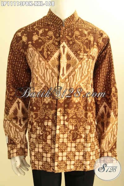 Koleksi Terbaru Kemeja Batik Koko Kerah Shanghai Lengan Panjang Untuk Pria Gemuk, Hadir Dengan Bahan Halus Motif Elegan Proses Printing Cabut, Cocok Untuk Kerja Dan Kondangan [LP11113PBK-XXL]