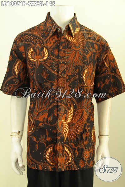 Koleksi Terbaru Kemeja Batik Super Jumbo 5L, Hem Batik Big Size Lengan Pendek Hadi Dengan Motif Klasik Nan Elegan Proses Printing, Bikin Pria Gemuk Terlihat Gagah [LD10074P-XXXXL]