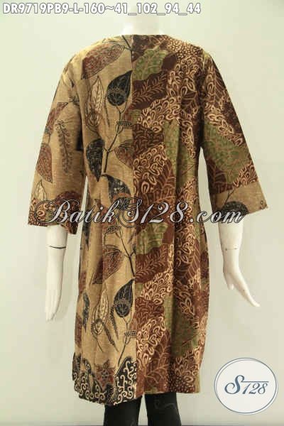 Koleksi Terbaru Pakaian Batik Modern Wanita Karir Yang Menunjang Penampilan Lebih Cantik Dan Anggun, Model Tanpa Krah Kombinasi 2 Motif Pakai Resleting Belakang Lengan 7/8 Hanya 100 Ribuan Saja [DR9719PB-L]