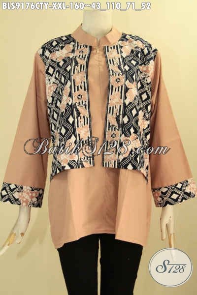 Koleksi Terbaru Pakaian Batik Wanita Gemuk Masa Kini, Busana Batik Solo Halus Kombinasi Kain Polos Toyobo Model Trend Masa Kini, Cocok Buat Acara Formal Maupun Santai [BLS9176CTY-XXL]